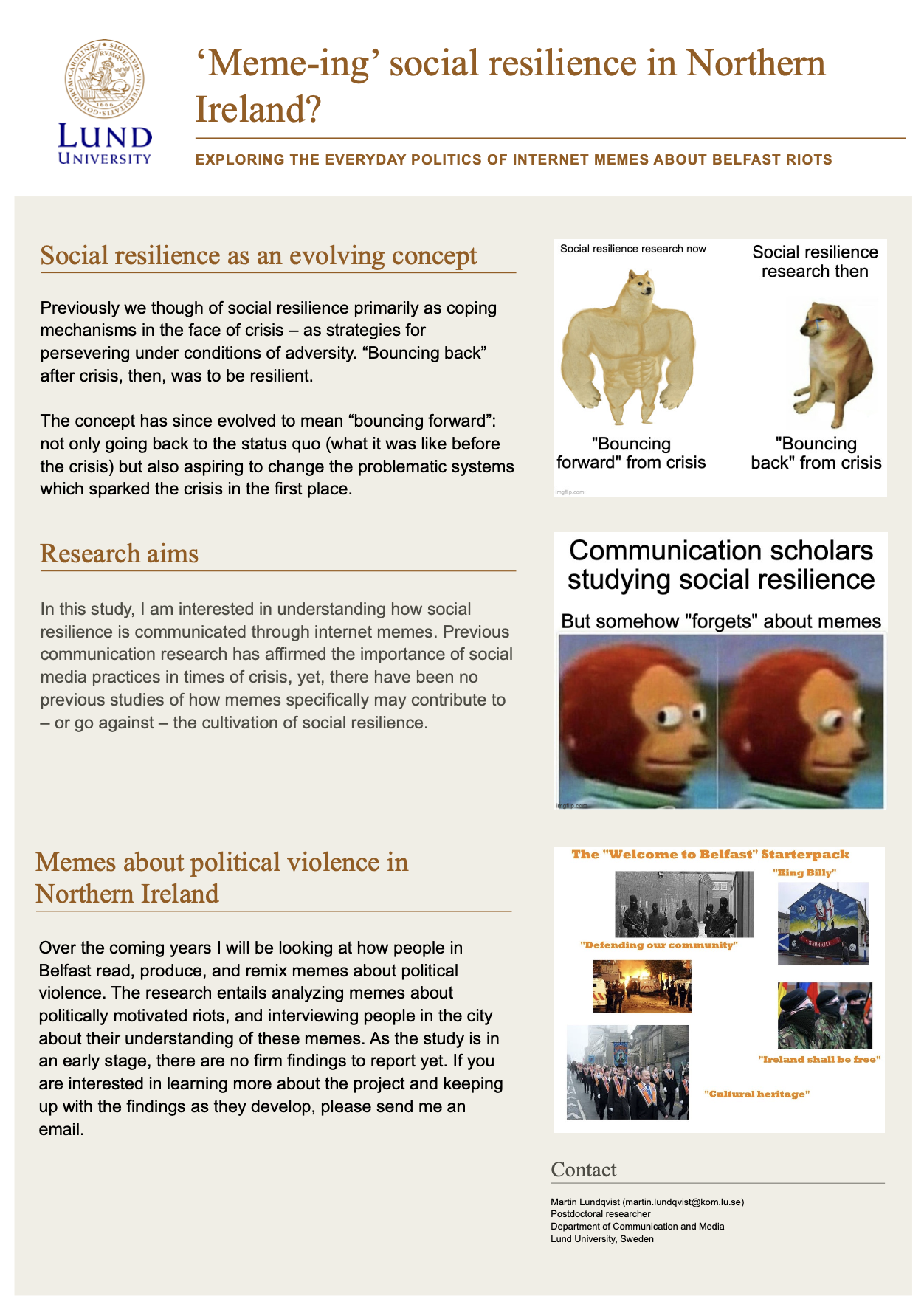 ‘Meme-ing’ social resilience in Northern Ireland? (Martin Lundqvist – Media & Communication Studies)