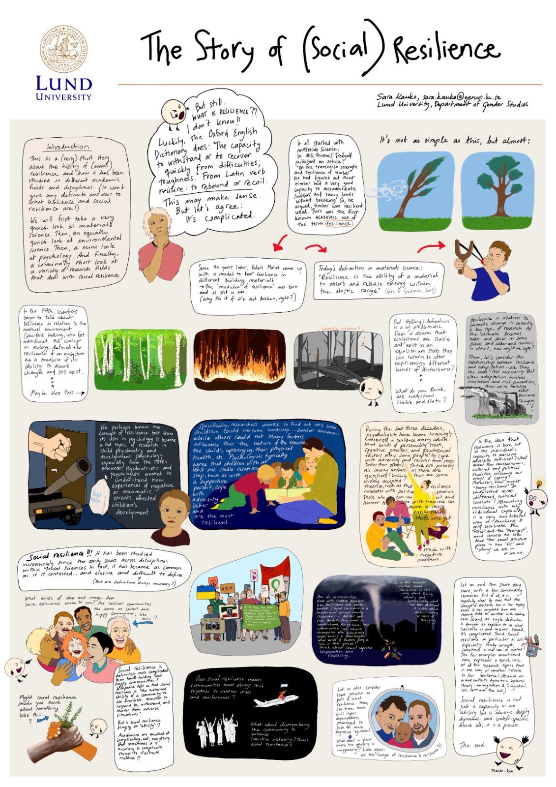 This event consisted of a popular science poster exhibition on social resilience in a changing world. At the Faculty of Social Sciences at Lund University, an interdisciplinary research group does research on social resilience, i.e. the processes of “bouncing back” and “bouncing ahead” during and after crises, disasters and disruptive changes. The poster exhibition aimed to present results and provoke thoughts based on research projects on social resilience during pandemics, climate challenges, migration processes, economic crises and political instability.